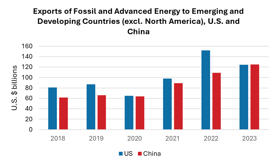 The most significant competitor to American firms in global energy exports is China, whose Belt and Road Initiative has invested over $1 trillion, primarily in developing economies; 40% of that investment went to the energy sector.