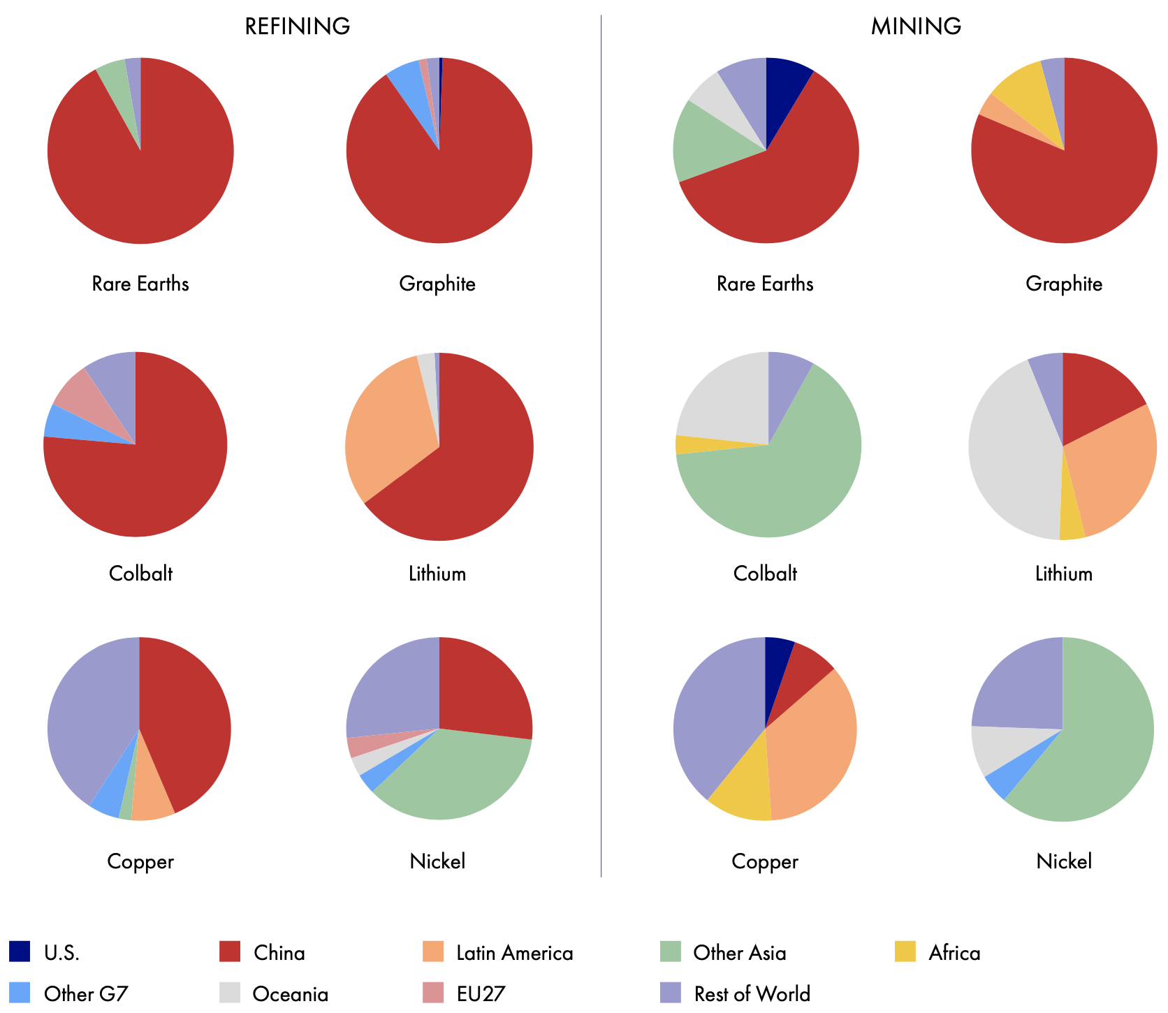 Figure 6. Share of minerals refining and mining by country or region, 2023 Source
