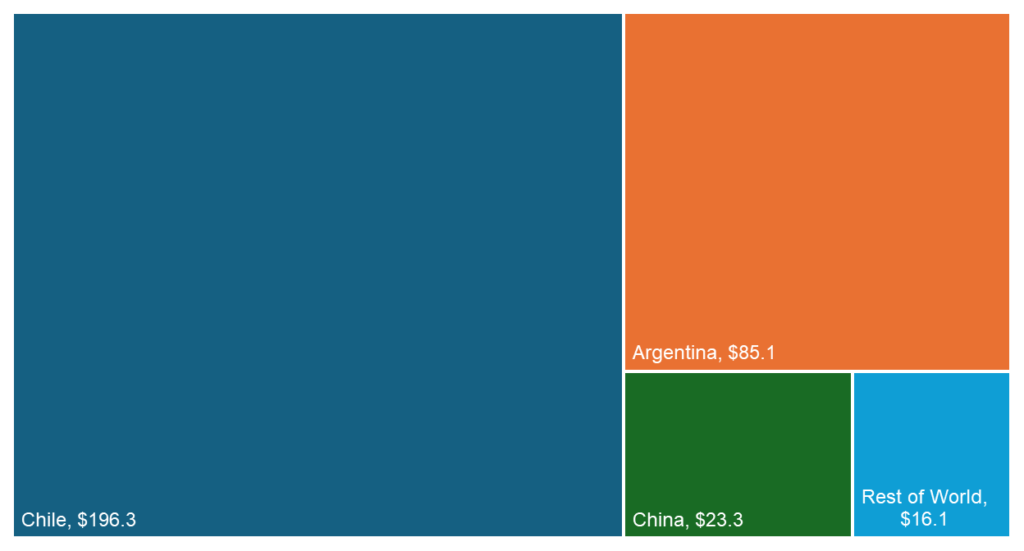 More than 75% of U.S. lithium imports come from resource-rich partners in the Lithium Triangle, including Chile, an FTA partner. Chile and Argentina account for 29% of global lithium production.