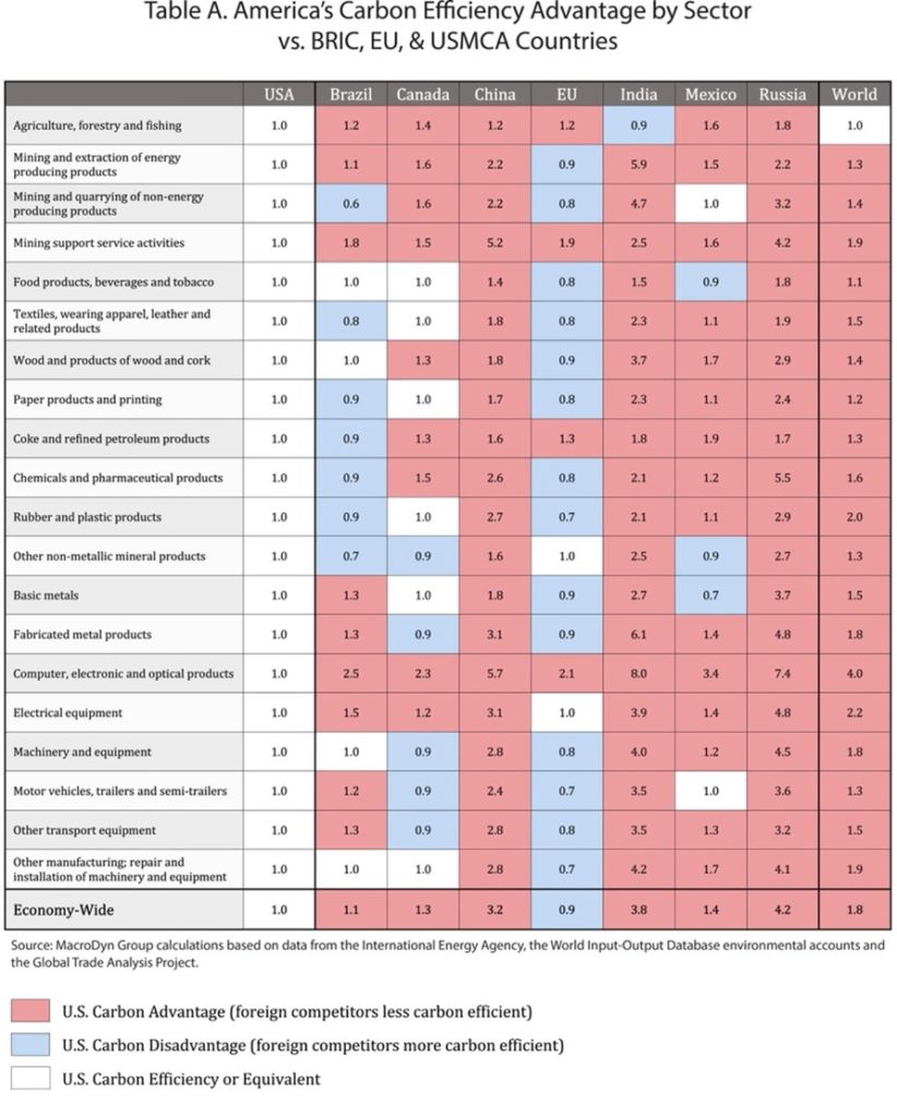 But the U.S. doesn’t just have a carbon advantage in steel manufacturing. As research from the Council shows, the U.S. is dramatically more carbon-efficient than its key competitors across nearly every manufacturing sector. In the case of the world’s largest exporter, China, the U.S. is 3x more carbon efficient. A carbon intensity import fee would dramatically benefit U.S. workers and manufacturers across the economy.