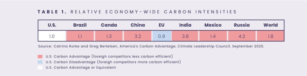 The United States is one of the world’s most carbon efficient economies, producing goods with far less emissions than almost any other economy. This “carbon advantage” has been well documented, first by the Council and subsequently by the Organization of Economic Cooperation and Development (OECD). Why is the U.S. so much more efficient than most of its key trading partners?