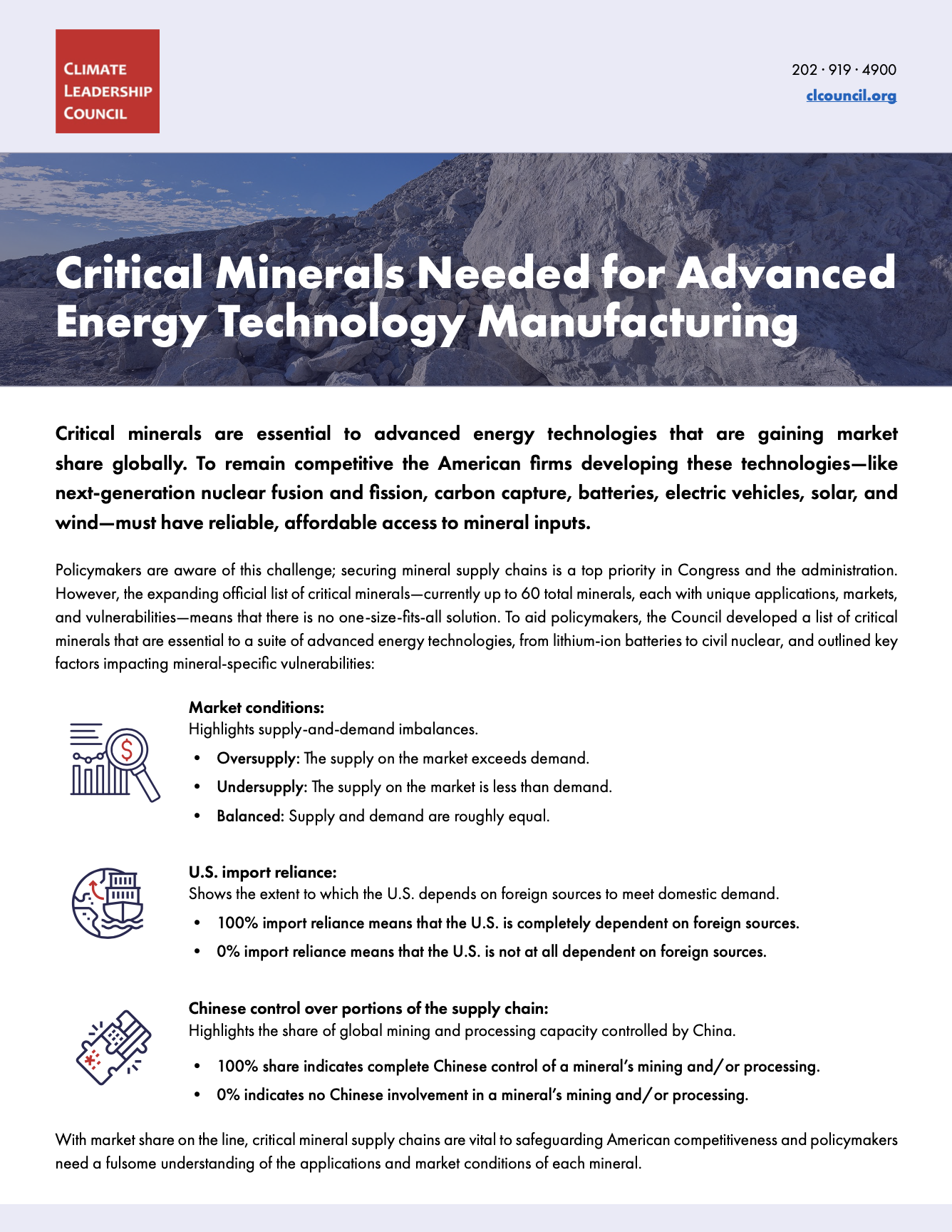 To aid policymakers, the Council developed a targeted list of critical minerals and identified key factors driving mineral-specific vulnerabilities: